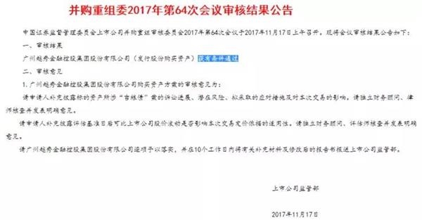 越秀金控发行股份购买广州证券32.765%股权,最初在去年12月披露预案,今年7月“中止审查”,17日才获得“有条件通过”。在这期间,越秀金控的并购重组方案三易其稿。