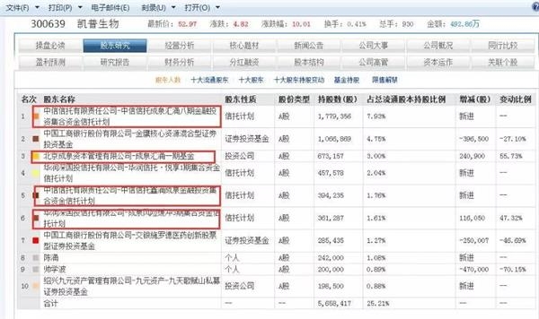 凯普生物的三季报中显示,十大流通股东中,成泉资本旗下的4个产品位列其中,包括成泉汇涌八期、成泉汇涌一期、中信信托成泉金融投资集合资金信托以及成泉风险缓冲3期。