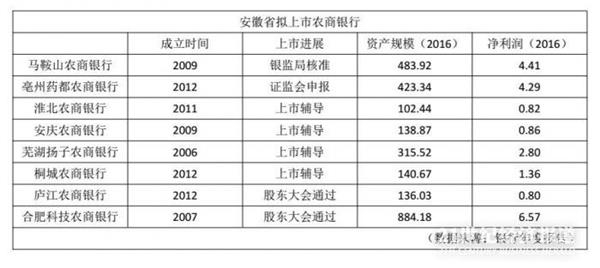 安徽多家农商行正在积极筹备上市,该省目前只有徽商银行一家城商行在H股上市。