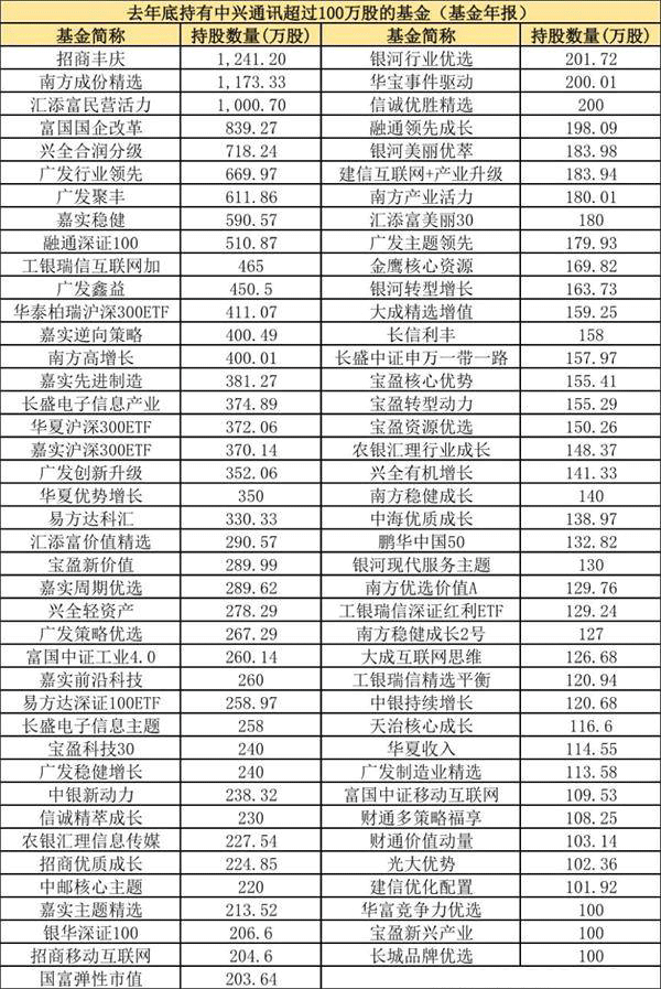 作为5G的龙头股,中兴通讯一直是基金持仓的重点。根据数据统计,截至去年底,共有653只公募基金持有不同数量的中兴通讯A股,这些基金合计持有数量达到32659万股,按照去年底市价计算,持股市值超过100亿元,今年以来虽然中兴通讯股价有所下跌,但按照停牌前收盘价估算,公募持有市值依然约达100亿元。同时,也有一些公募基金持有中兴通讯港股股份。