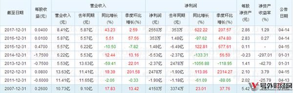 4月23日,中冶美利云产业投资股份有限公司(以下简称“美利云”)发布2017年业绩报告。根据公告显示,2017年,美利云实现营业收入为8.41亿元,同比增长43.23%;归属于上市公司股东的净利润为2550万元,同比增长622.22%。《号外财经》注意到,由于2016年净利润仅为353万元,虽然2017年美利云净利润增幅惊人,但其净利润仅为2550万元,基本每股收益0.04元,公司最新分配方案为不分配不转增。