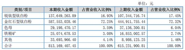 锐钛型钛白粉销售收入较上年同期增长30,304,547.15 元, 增幅28.23%,主要系产品销售价格上涨导致销售收入增长所致。
