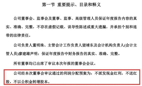 虽然现金充沛,但是格力电器表示2017年不派发现金红利,不送红股,不以公积金转增股本,余额转入下年分配。