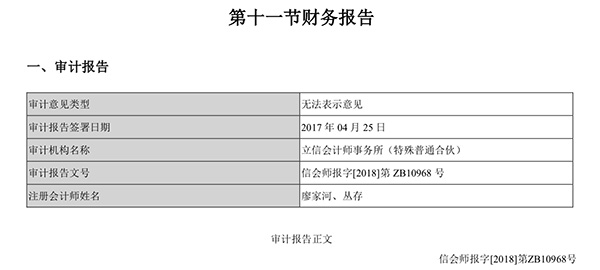 这已经是连续两年乐视网未能获得审计机构的无保留意见的审计报告。2016年时,当时的乐视网财报审计机构信永中和会计师事务所出具了带强调事项段的无保留意见。