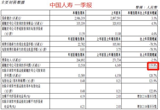 中国人寿一季度净利润135.18亿元,同比增长119.8%!净利润翻倍涨主要受传统险准备金折现率假设更新的影响。