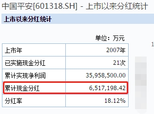 中国平安一季报显示,建议派发公司30周年特别股息,每股派发现金股息人民币0.20元,分红总额达36.56亿元。Wind数据显示,中国平安2007年上市以来,已连续分红11年,累计实施现金分红21次,累计现金分红651.72亿元。