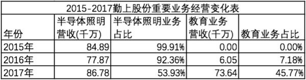 勤上股份在2015年年报中曾表示,收购教育资产进军教育,是为应对其半导体照明收入呈下滑状态。提升其持续盈利能力,实现价值提升与转型。勤上股份进军教育,主要是盯上了该行业的吸金能力。