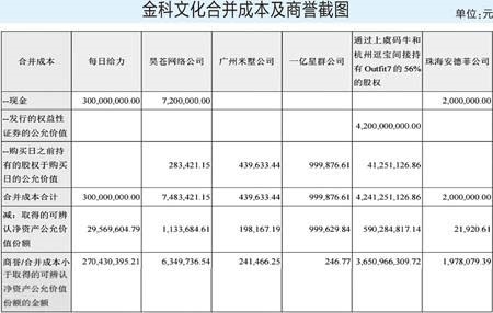 商誉可量化: 金科文化并购获商誉36.51亿