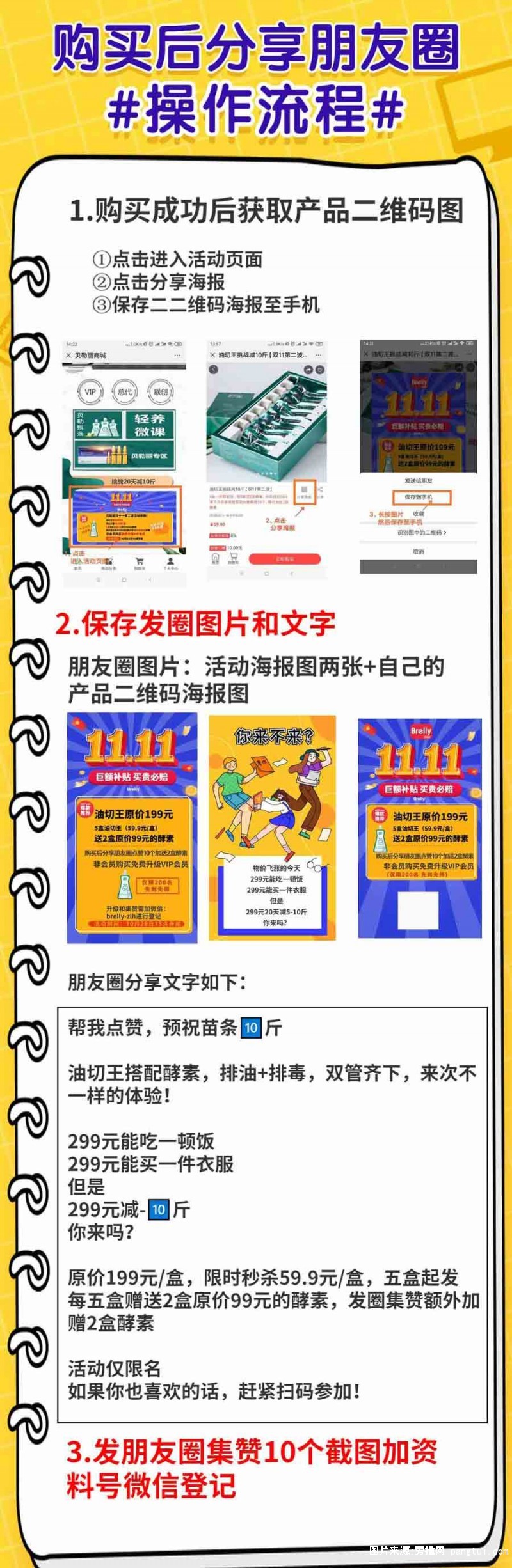 原价199元的乳酸菌油切王现在只要59.9元/盒,5盒油切王送2盒原价99元的酵素,分享朋友圈点赞10个加送2盒酵素。非会员购买还能免费升级为VIP会员。