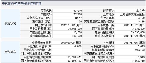 根据交易所公告,中农立华生物科技股份有限公司于2017年11月16日起在上海证券交易所主板上市交易。