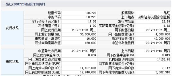 根据交易所公告,一品红药业股份有限公司于2017年11月16日起在深圳证券交易所创业板上市交易。