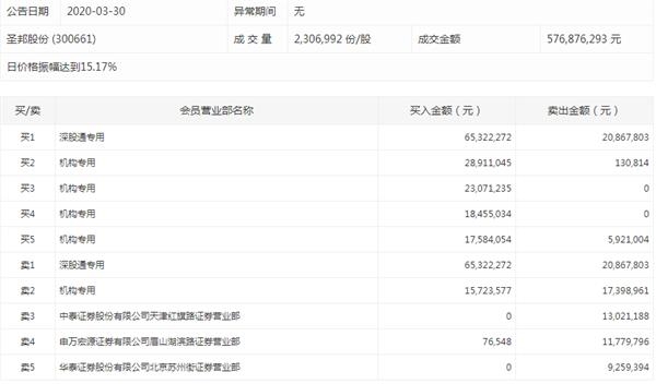 3月30日午后,部分芯片股发力上攻,圣邦股份 (300661)收涨9.39%,日内振幅达15%,全天成交5.77亿元。盘后数据显示,机构资金为买入主力,四个机构席位合计买入8802万元,一机构席位买入1572万元同时卖出1740万元;深股通资金净买入4445万元。