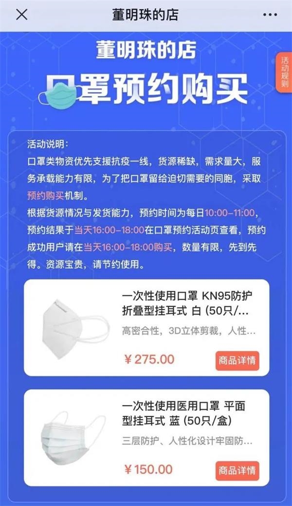 当天公众号“董明珠自媒体”发文,格力生产的KN95防护级别一次性使用口罩、医用级别一次性使用医用口罩,今天将在“董明珠的店”上线。