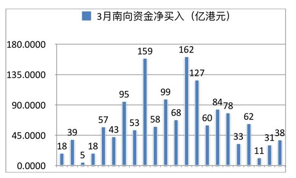 数据显示,3月,南向资金全部实现正向的净流入,月度净流入总额接近1400亿港元,这一数据不仅远远超过1月和2月的数值,还创下了自2014年沪港通开通以来单月净流入资金量的新高。