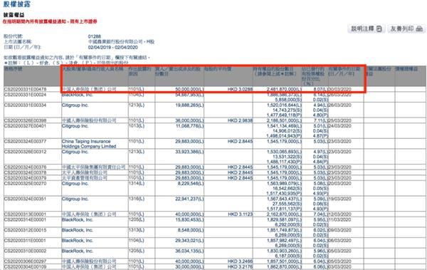 据另一份港交所4月2日权益披露数据显示,中国太保(02601.HK)获中国人寿保险股份有限公司于3月30日在场內以每股平均价22.5411港元增持160万股,涉资约3606.58万港元。增持后,中国人寿保险的最新持股数目为1.95亿股,持股比例由6.97%升至7.03%。