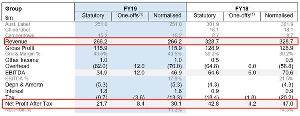 贝拉米财报显示,2019年度其实现营收2.66亿澳元,同比下降19.01%;税后净利润2170万澳元,同比下降49.3%。
