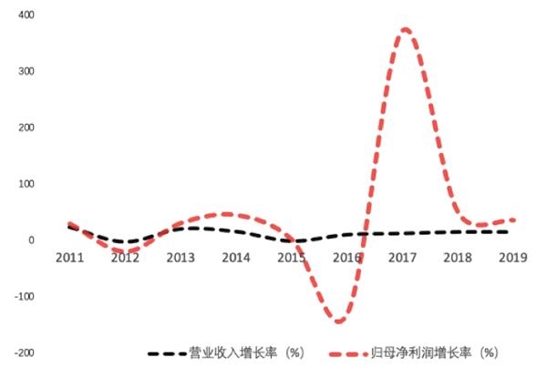 营业收入和净利润虽然实现双增长,但从该公司近年来的净利润增速看,却呈现出较大的波动。