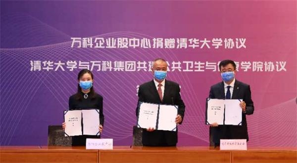 万科企业股资产管理中心与清华大学教育基金会签署了捐赠协议,代表万科人全体,将企业股中心的全部资产2亿万科股票一次性捐赠给清华大学教育基金会,用于设立“清华大学万科公共卫生与健康学科发展专项基金”。万科将与清华大学共建公共卫生与健康学院,世界卫生组织原总干事陈冯富珍将出任首任院长。