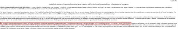 消息面上,瑞幸咖啡今日提交给美国证券交易委员会(SEC)的文件显示,在审计截至2019年12月31日的年报发现问题后,公司董事会成立了一个特别调查委员会。该调查委员会2日向董事会说明,公司首席运营官刘建及其部分下属员工存在伪造交易等行为。初步调查确定的信息表明,从2019年第二季度到2019年第四季度,公司虚增了22亿人民币交易额,相关的费用和支出也相应虚增。目前调查仍在进行,公司将进一步对财务数据等调整进行公告。