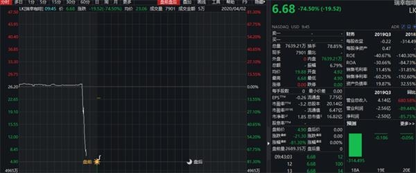 4月2日,瑞幸咖啡股价暴跌,盘前跌幅一度超过80%,开盘15分钟两次熔断,截至发稿,股价报6.68元,昨日公司收盘价为26.20美元。