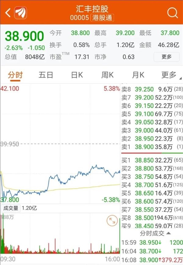 4月2日,在前日大跌之后,汇丰控股周四继续下跌,收跌2.63%报38.90港元/股,盘中最低价为37.8港元/股,目前股价已跌至2016年8月以来的新低。高盛将汇丰控股目标价从68港元下调至62港元,并表示将公司2020、2021及2022年每股收益预测分别下调33%、14%、7%,主要是由于疲软的经济背景导致信贷费用增加。