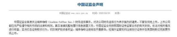 证监会刚刚发声:对瑞幸财务造假行为表示强烈的谴责
