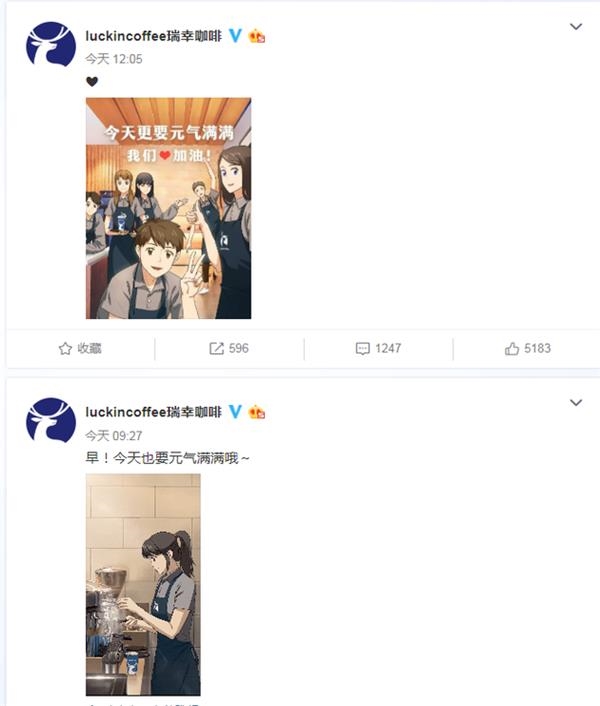 @luckincoffee瑞幸咖啡官微今天也两度发图鼓励。