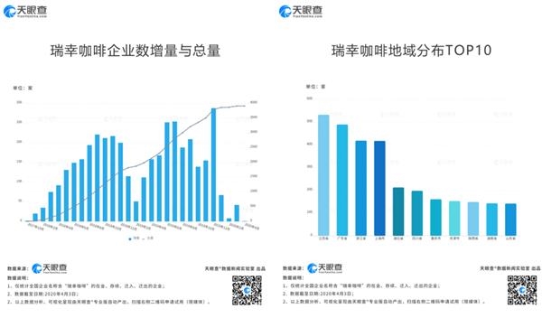 天眼查专业版数据显示,截至2020年4月3日,全国企业名称中含“瑞幸咖啡”的在业、存续、迁入和迁出的企业共计3913家。