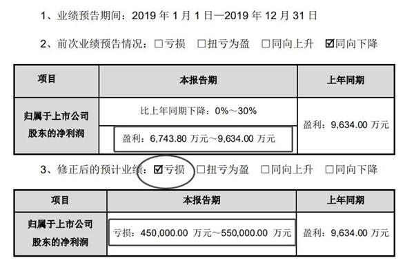 突然修正业绩变巨亏: