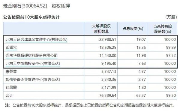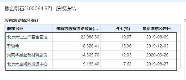 值得注意的是,豫金刚石深陷诉讼当中,5%以上大股东和实控人持股也几乎全都处于质押和冻结状态。