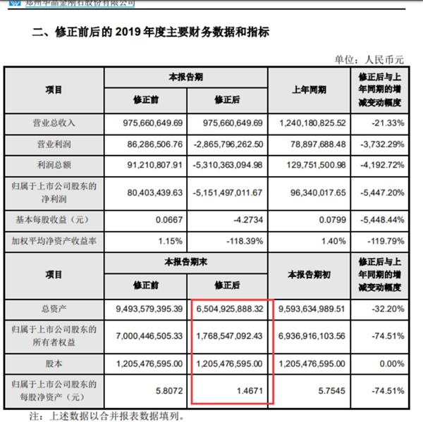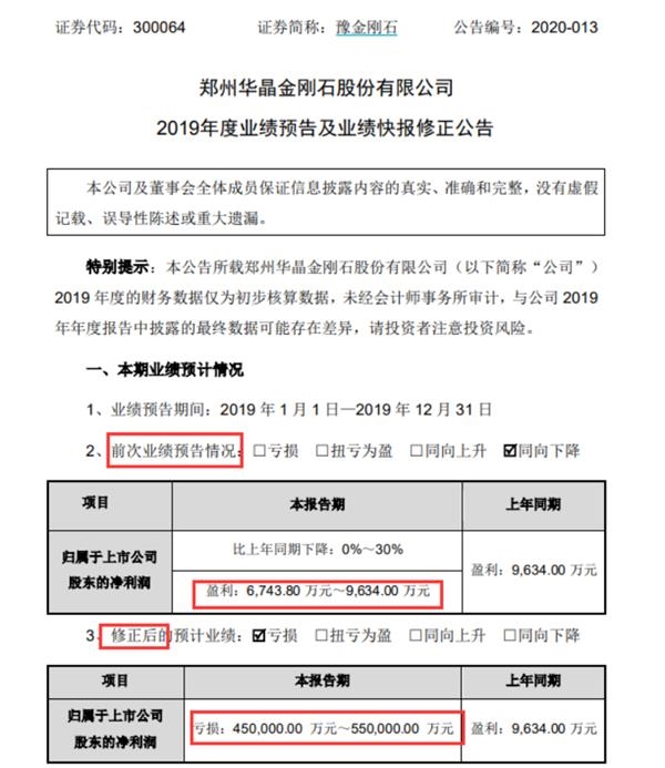 今年2月底,豫金刚石发布了2019年业绩快报,当时公司披露的2019年净利润数据为8040.34万元。