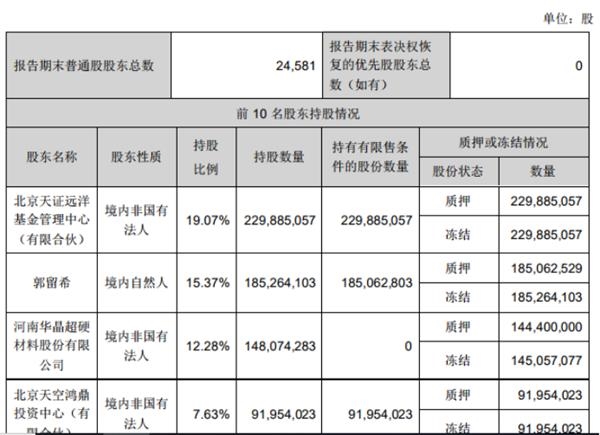而前十大股东中,第1、2、3、4、6、7、8名股东所持股份几乎已悉数被质押或冻结。