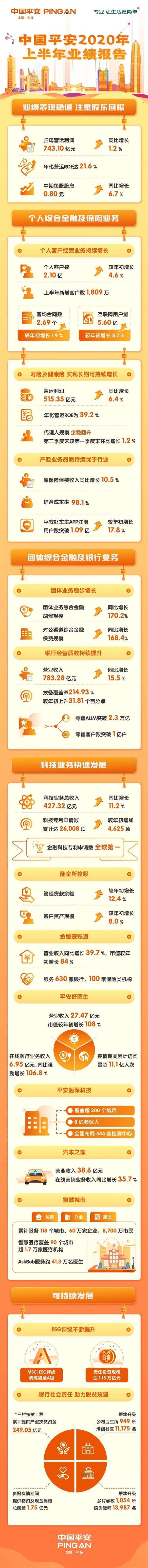 值得一提的是,在经济增速短期受到较大冲击的不利环境下,平安加大了股东回报,向股东派发中期股息每股现金0.80元,同比增长6.7%。