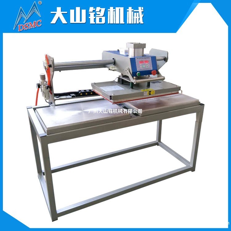 本机器的主要特点是采用上发热板左右移动,两个工 作平台固定不动,防止材料走位,特别适合材料大于底板的产品烫压。