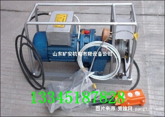 1.机架2.电动机3.电气箱4.减速机5.钢丝绳6.滑轮7.夹钳8,控制按钮