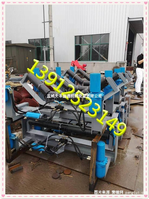 新型液压全自动皮带调偏装置(皮带机自动纠偏器 扬州液压调偏器 FYTZQ皮带纠偏器 WYTP全自动无源液压皮带纠偏器)是由调心轮与油泵组成的调心轮复合泵、集成块和油缸组成组合油缸、油管机及支承支架构成。