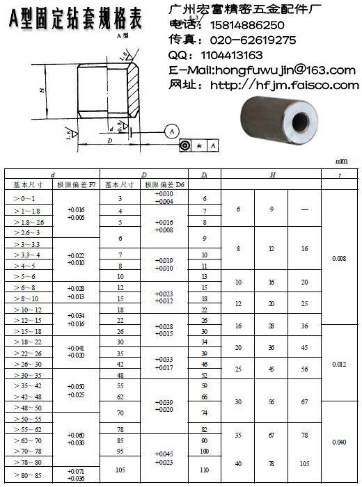 *国标固定钻套(A型)规格表(d3.0~d17.5常用规格备有现货,价格便宜,发货快捷)