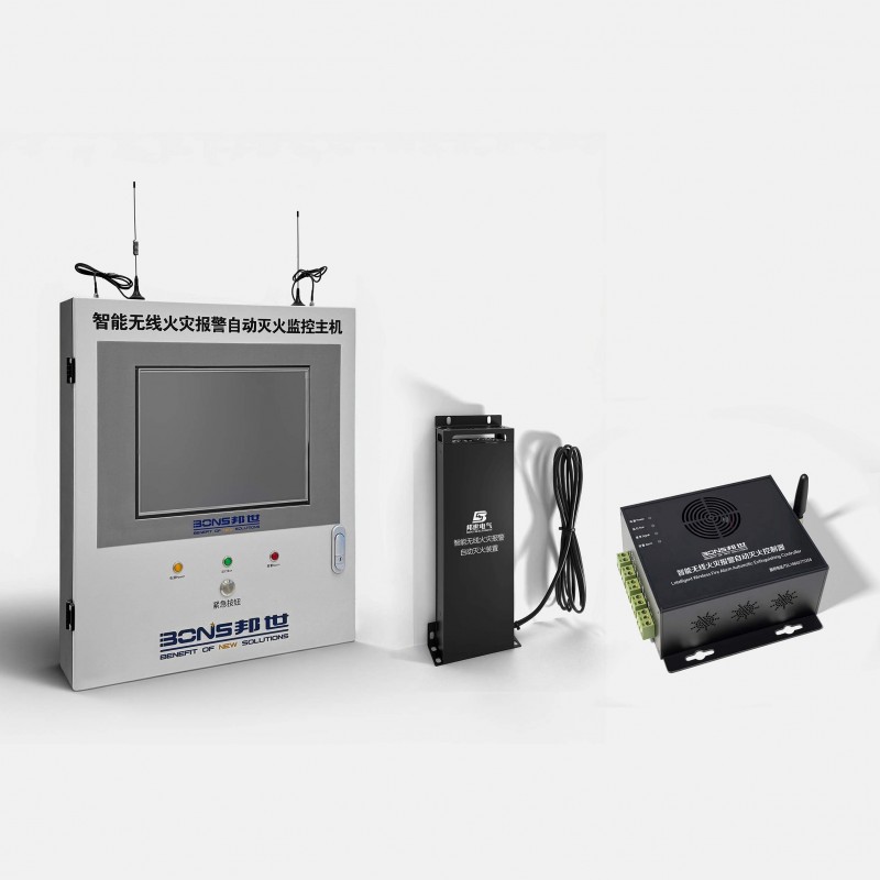 采用特定的无线信号频段传输相关数据,抗干扰性强,更加高效、稳定、可靠:更简化的系统结构,保证运行和检测更稳定;采用的自动灭火装置体积小、启动可靠、灭火快且效率高,稳定性高,不会对其设备造成影响。