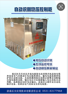 电压自动识别稳压柜是一款自动在线识别进线电压、在线监控漏电电流、运行电流、进线相序的一款专用调压器。可根据输入电压高低自动稳压隔离输出。稳压柜具有对从井场电源接电处到修井机进相电缆和设备电气回路进行电压隔离调压、漏电电流监测和保护的自巡检功能,具备检测到相应故障后报警及切断输出端电源的功能,输出电压可以根据输入电压高低自动判断,选择接近380V电压输出。功率从16KW到120KW不等,满足不同需求。是油田大修作业自动化修井设备、值班房电气设备安全供电装置。0531-83177958