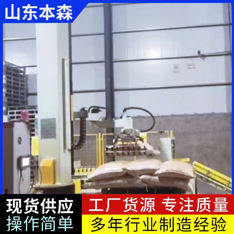 机器人码垛花生全自动立柱式堆包机是一种采用立柱式结构设计的自动化码垛设备,它集成了机械、电子、计算机、传感器及人工智能技术,能够自动完成花生的抓取、搬运、堆叠等码垛作业,是现代化智能装备的典型代表。