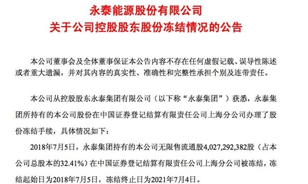 同时,永泰能源股票也从2018年7月6日起停牌。