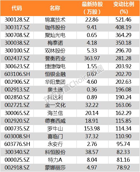 北向资金增持股份占其持股比例前20家公司名单: