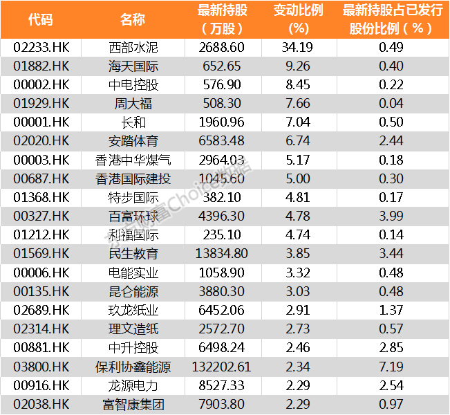 南向资金增持股份占其持股比例前20家公司名单: