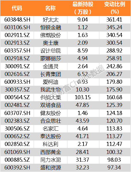 数据显示,昨日好太太、恒银金融等受到北向资金的大幅加仓,其中好太太在昨日之前北向资金仅持有2万股,但在昨日遭大幅加仓7万股。