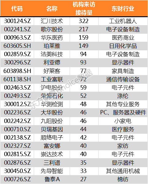截至目前,东方财富Choice数据显示,上周(8月20日到8月26日)有76家公司接待了来自机构投资者的调研,其中汇川技术接待了322家机构投资者,是上周最受欢迎的上市公司。