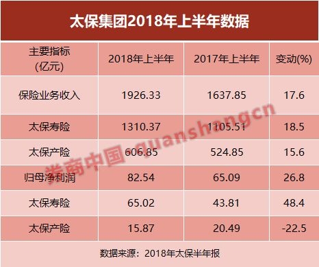 2018年上半年,太保集团营业收入首破2000亿元,同比增长15.3%,截至2018年6月30日,太保集团总资产达到1.29万亿元,同比增长9.8%。