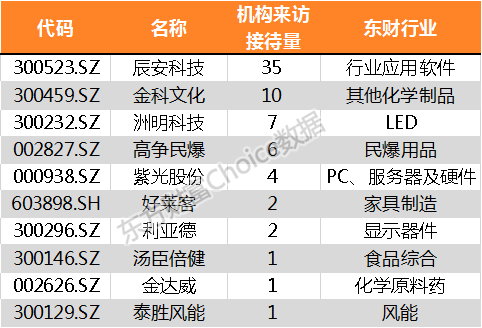 截至目前,东方财富Choice数据显示,昨日(8月28日)机构投资者调研了10家公司,其中辰安科技接待了35家机构投资者的调研。