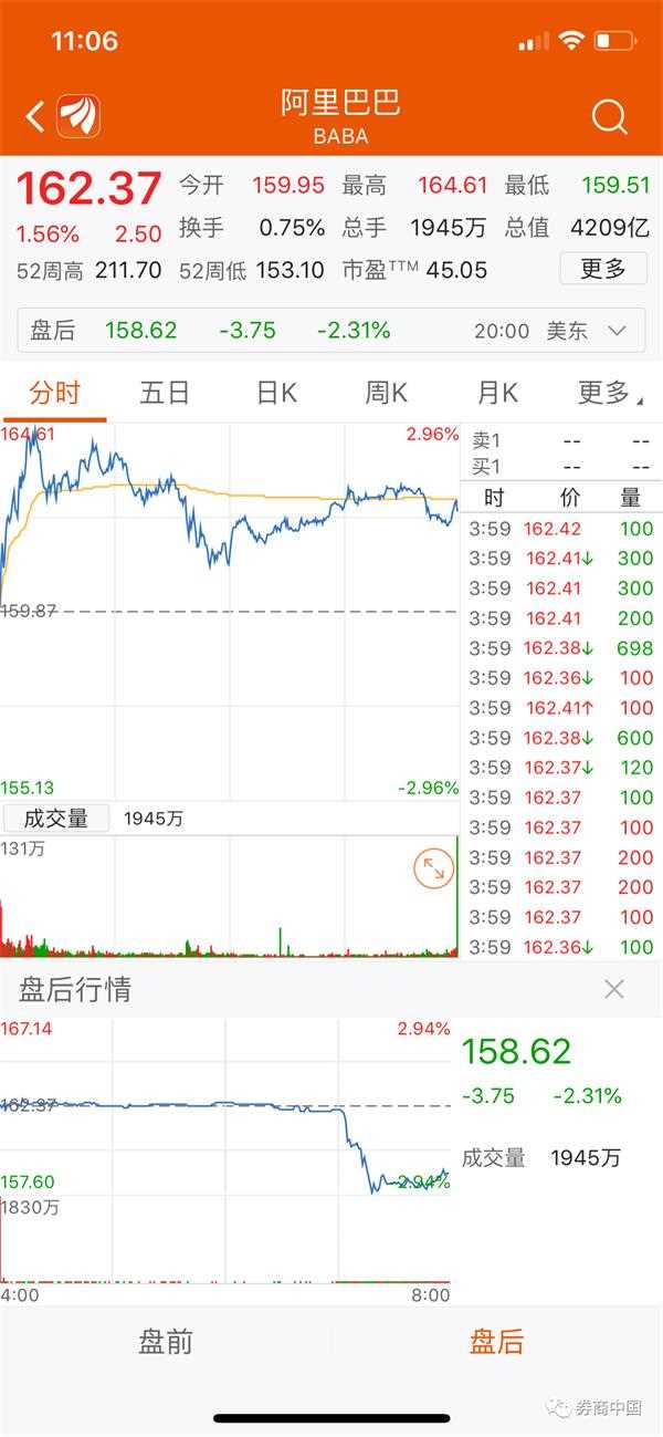 受此影响,阿里股价在美股盘后下跌逾2%。