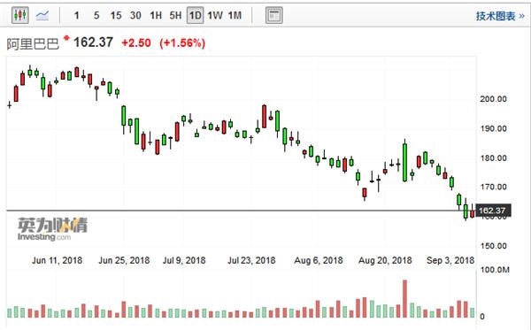 这条消息其实早在周末已经发酵。9月7日,纽约时报曝光马云将“退休”,受此消息影响,阿里巴巴盘后跌幅一度近3%,股价最低触及157.5美元。之后,阿里表示这一消息有所误读,周一将正式对外界宣布传承细节,之后阿里巴巴股价反弹。