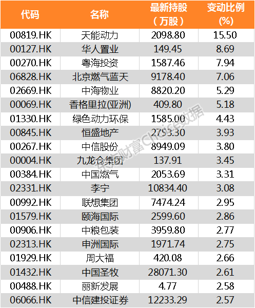 南向资金增持股份占其持股比例前20家公司名单: